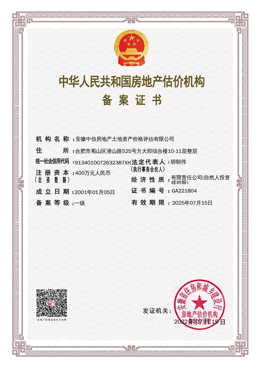 Copyright©安徽中信房地產土地資產價格評估有限公司&安徽中信工程咨詢有限責任公司&安徽中信惠遠房地產數據信息咨詢有限公司