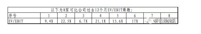 評(píng)估人員查找了同樣從事餐飲連鎖業(yè)務(wù)的可比公司,考慮了目標(biāo)公司B的規(guī)模、經(jīng)營(yíng)區(qū)域和發(fā)展情況,選取了8家上市公司作為研究對(duì)象。