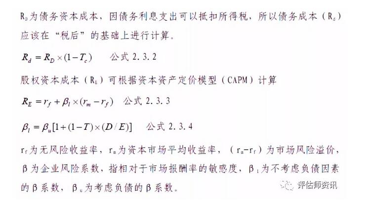 在計(jì)算非上市公司股權(quán)時(shí),通常采用加權(quán)平均資本成本(RWACC)作為企業(yè)自由現(xiàn)金流折現(xiàn)法的折現(xiàn)率。加權(quán)平均資本成本,是指企業(yè)以各種資本在企業(yè)全部資本中所占的比重為權(quán)重,對(duì)各種長(zhǎng)期資金的資本成本加權(quán)平均計(jì)算得出的資本總成本: