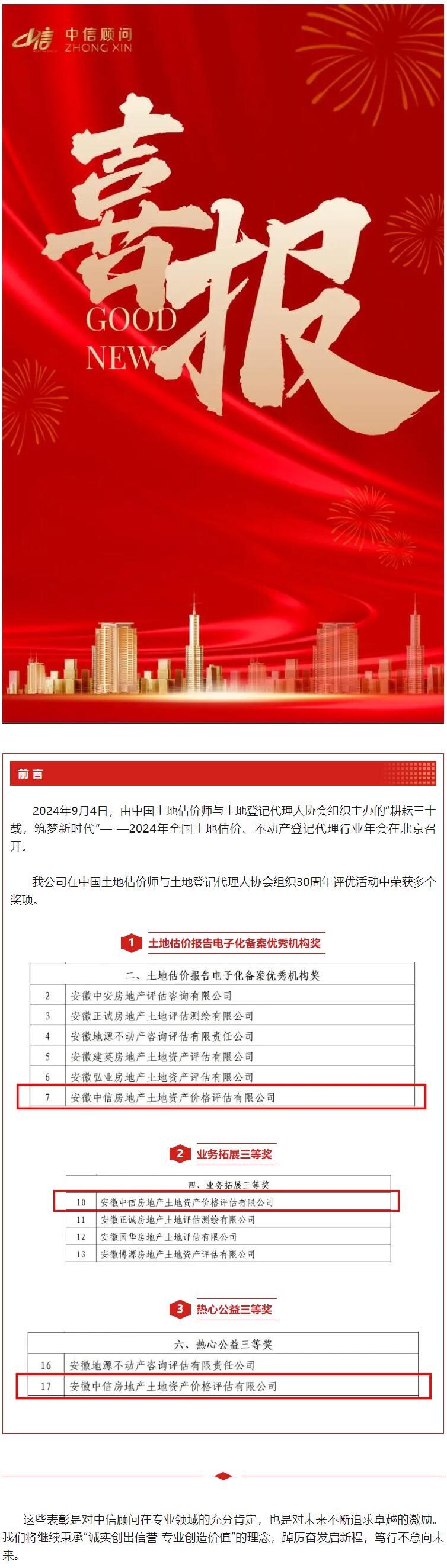 我公司在中估協30周年行業評優活動中榮獲多個獎項